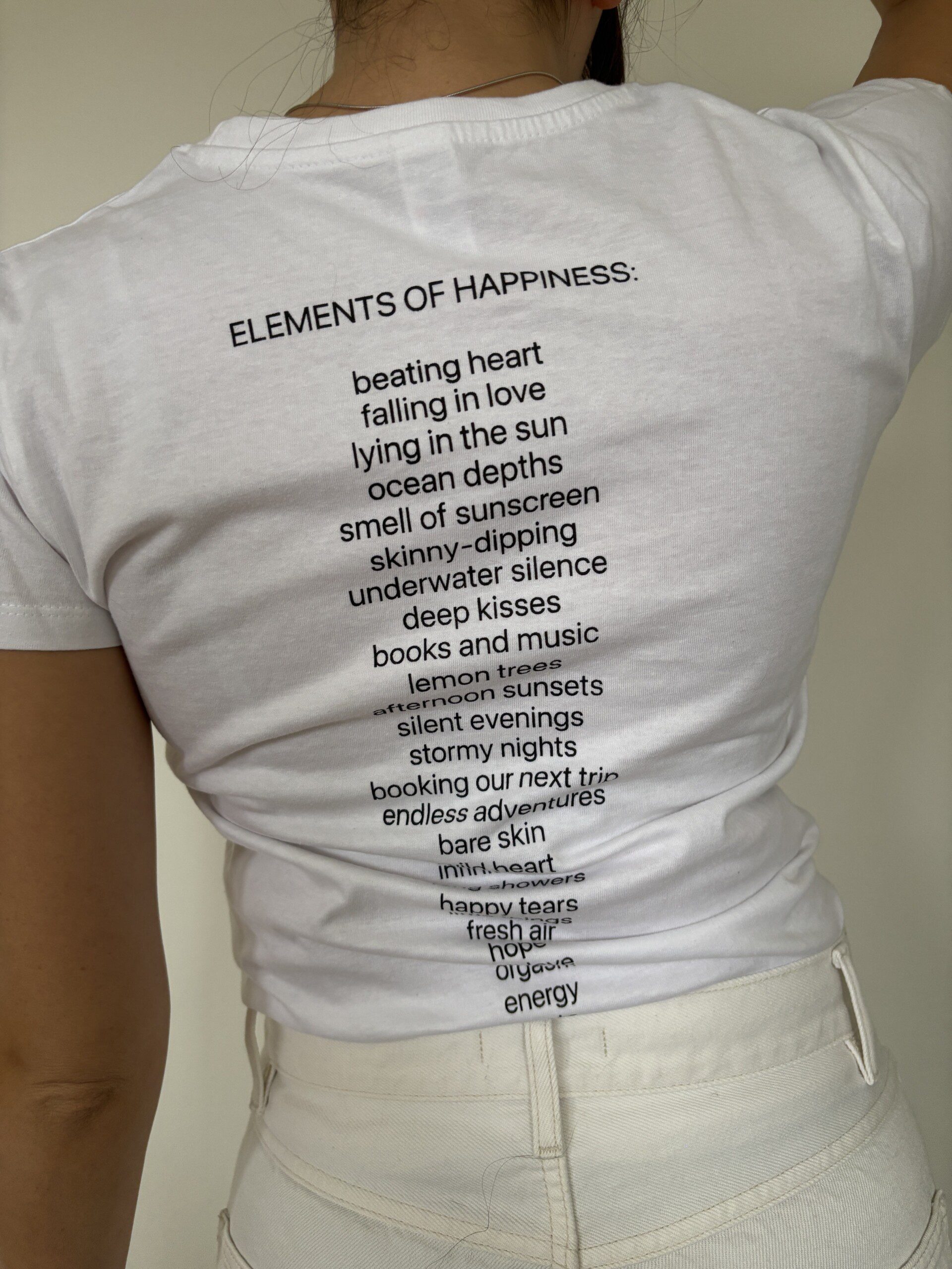 – Front black logo print – Back black quote – Screen print – 100% cotton, 190 GSM – Machine wash 30°c – OEKO-TEX® STANDARD 100